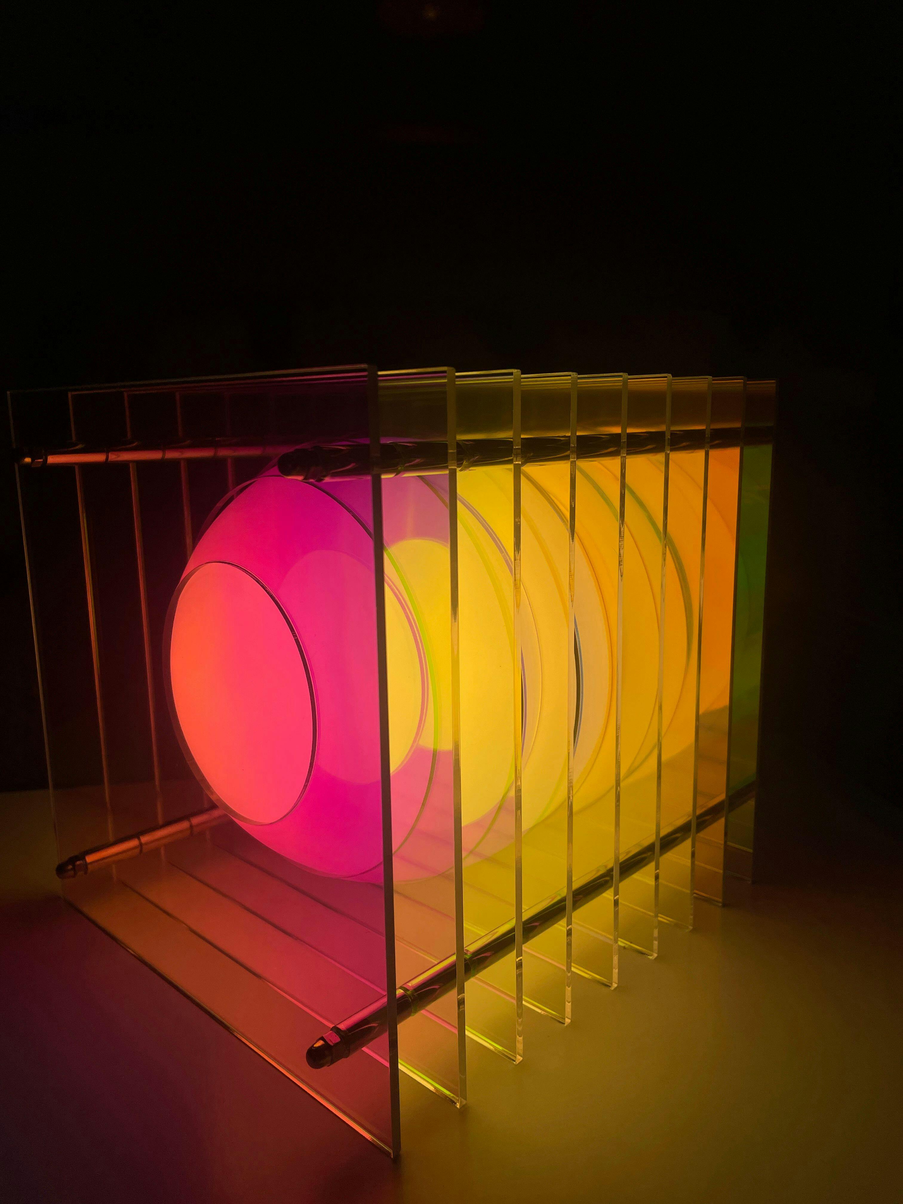 Materials: acrylic, stainless steel, matte opal glass